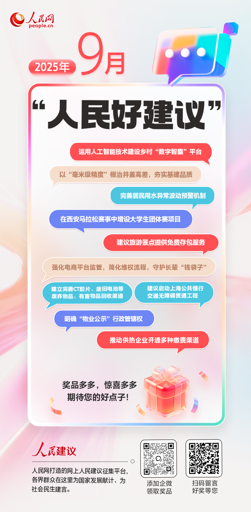 “人民好建议” 9 月榜单出炉 附完整获奖名单